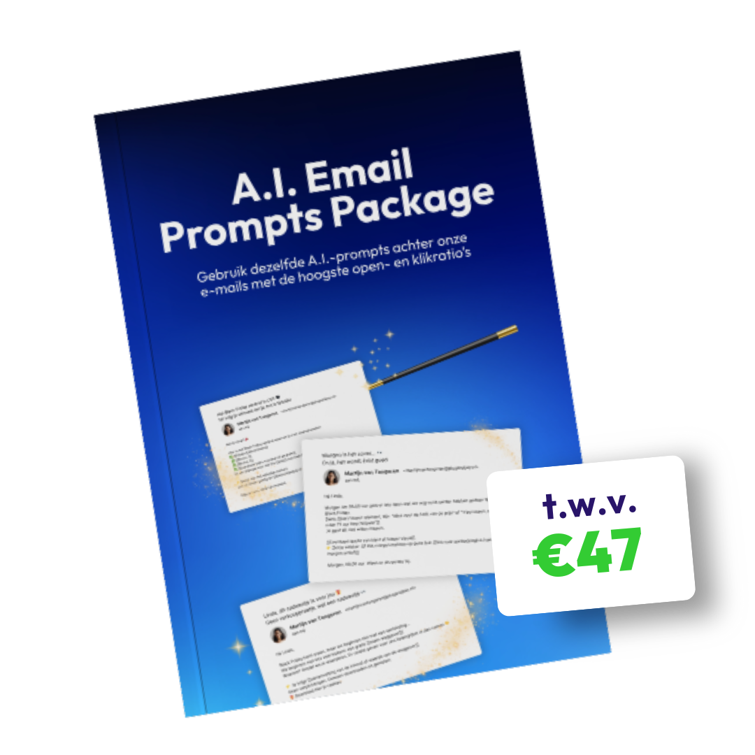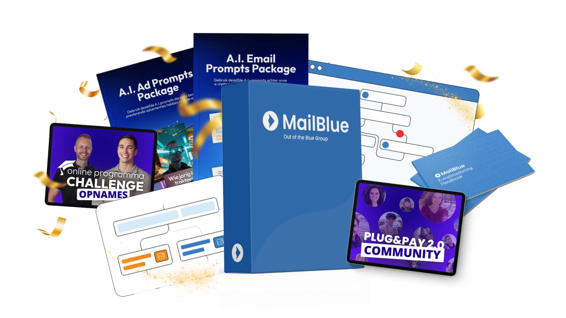 Krijg het fysieke MailBlue Handboek cadeau. Een praktische gids vol bewezen campagnes, slimme e-mails en automatiseringen die écht verkopen. Je ontvangt hem gewoon thuis op de mat.